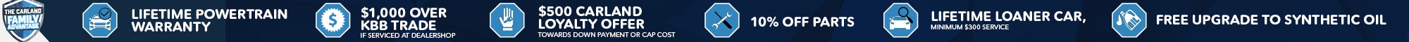 At our Alpharetta Honda service location, you can get the benefit of our amazing Carland Family Advantage program. It means if you bought from Honda Carland, you'll get free lifetime loaner cars with a minimum $300 service. In addition, the program includes a lifetime powertrain warranty and we will honor that coverage and do the repair work. We also give you free upgrades to synthetic motor oil for Honda oil changes and 10% off genuine Honda parts. It's an amazing array of service advantages we offer at the Carland Service Center in Alpharetta, GA.