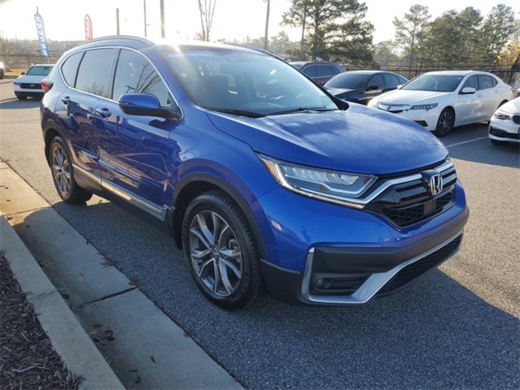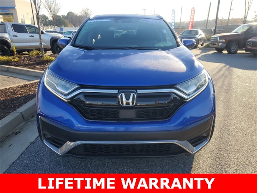 HondaTrue CERTIFIED!! Receive a LIFETIME Limited Powertrain Warranty - FREE OF CHARGE!! Clean CARFAX. Aegean Blue Metallic 2021 Honda CR-V Touring FWD CVT LIFETIME POWERTRAIN WARRANTY, REMAINDER OF FACTORY WARRANTY, BLUETOOTH MP3, BACKUP CAMERA, BLINDSPOT, NAVIGATION NAV GPS, SUNROOF MOONROOF, SIRIUS XM SATELLITE RADIO, REMOTE KEYLESS ENTRY, REMOTE START, HEATED SEATS, CLEAN CARFAX HISTORY, LOW MILEAGE, 9 Speakers, ABS brakes, Adaptive Cruise Control: Adaptive Cruise Control (ACC) with Low-Speed Follow, Alloy wheels, AM/FM radio: SiriusXM, Apple CarPlay/Android Auto, Auto High-beam Headlights, Auto-dimming Rear-View mirror, Automatic temperature control, Blind Spot Information (BSI) System warning, Brake assist, Compass, Delay-off headlights, Dual front impact airbags, Dual front side impact airbags, Electronic Stability Control, Exterior Parking Camera Rear, Forward collision: Collision Mitigation Braking System (CMBS) + FCW mitigation, Front dual zone A/C, Front fog lights, Garage door transmitter: HomeLink, Heated door mirrors, Heated Front Bucket Seats, Heated front seats, Heated steering wheel, Leather Seat Trim, Memory seat, Navigation system: Honda Satellite-Linked Navigation System, Overhead airbag, Power door mirrors, Power driver seat, Power Liftgate, Power moonroof, Power passenger seat, Radio data system, Radio: 330-Watt AM/FM/HD/SiriusXM Prem Audio System, Rain sensing wipers, Remote keyless entry, Security system, Steering wheel mounted audio controls.