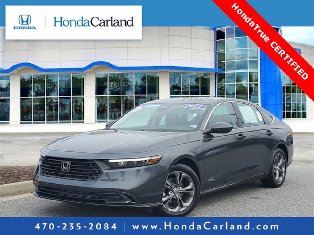 HondaTrue CERTIFIED!! Receive a LIFETIME Limited Powertrain Warranty - FREE OF CHARGE!! CARFAX One-Owner. Clean CARFAX. Meteorite Gray Metallic 2023 Honda Accord EX FWD CVT LIFETIME POWERTRAIN WARRANTY, REMAINDER OF FACTORY WARRANTY, BLUETOOTH MP3, BACKUP CAMERA, BLINDSPOT, SUNROOF MOONROOF, REMOTE KEYLESS ENTRY, REMOTE START, HEATED SEATS, CLEAN CARFAX HISTORY, ONE OWNER, LOW MILEAGE, Black w/Fabric Seat Trim, Adaptive Cruise Control: Adaptive Cruise Control (ACC) with Low-Speed Follow, Alloy wheels, Apple CarPlay/Android Auto, Auto-dimming Rear-View mirror, Automatic temperature control, Compass, Delay-off headlights, Electronic Stability Control, Fabric Seat Trim, Heated Front Bucket Seats, Heated front seats, Outside temperature display, Overhead airbag, Radio data system, Radio: 180-Watt AM/FM Audio System, Remote keyless entry, Security system, Speed-sensing steering, Steering wheel mounted audio controls.
