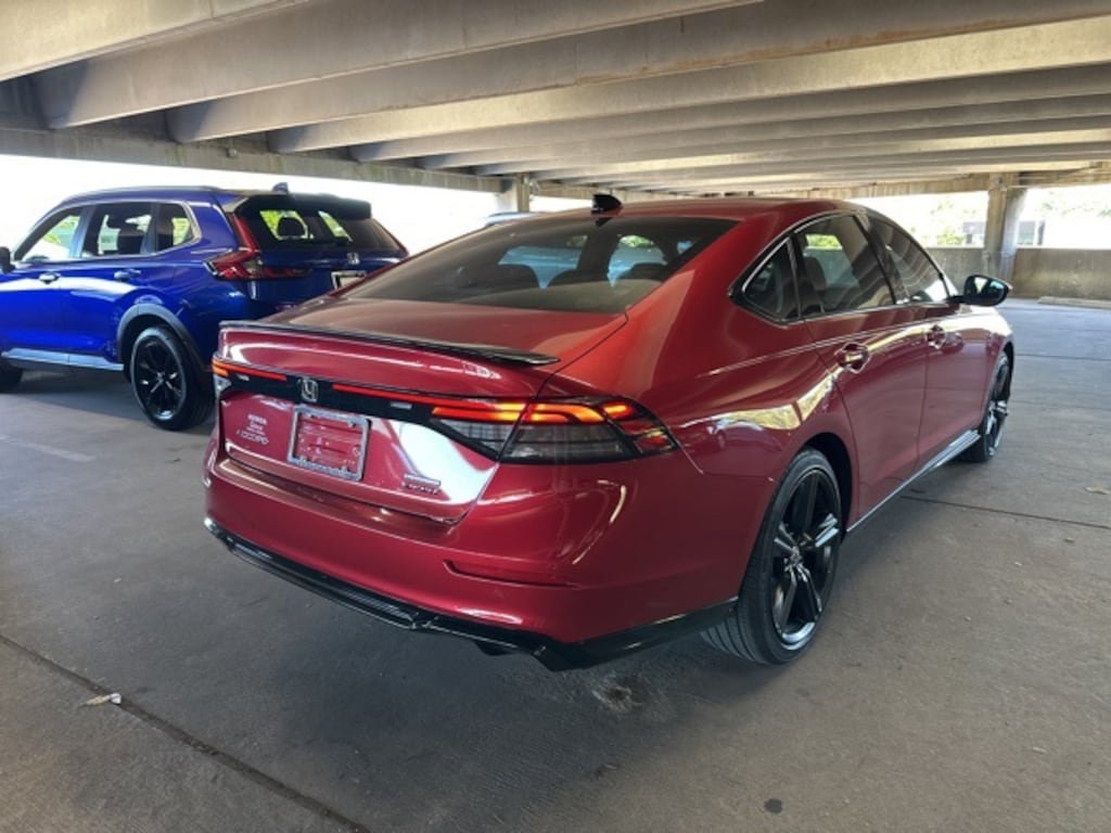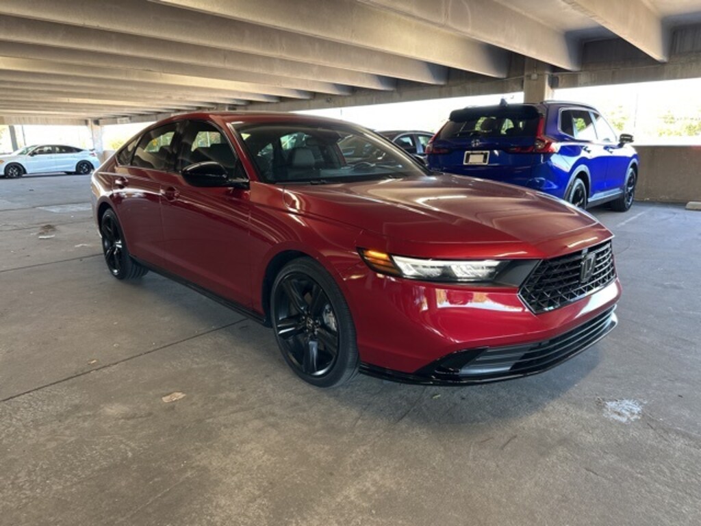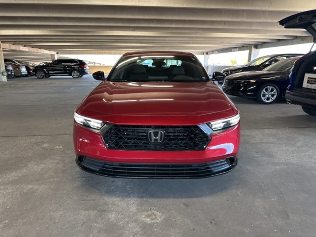 HondaTrue CERTIFIED!! Receive a LIFETIME Limited Powertrain Warranty - FREE OF CHARGE!! Clean CARFAX. Radiant Red Metallic 2024 Honda Accord Hybrid Sport-L FWD eCVT LIFETIME POWERTRAIN WARRANTY, REMAINDER OF FACTORY WARRANTY, BLUETOOTH MP3, BACKUP CAMERA, BLINDSPOT, SUNROOF MOONROOF, REMOTE KEYLESS ENTRY, REMOTE START, HEATED SEATS, CLEAN CARFAX HISTORY, LOW MILEAGE, 2.0L 16V DOHC, 8 Speakers, ABS brakes, Adaptive Cruise Control: Adaptive Cruise Control (ACC) with Low-Speed Follow, Alloy wheels, AM/FM radio, Apple CarPlay/Android Auto, Auto High-beam Headlights, Automatic temperature control, Blind Spot Information (BSI) System warning, Brake assist, Compass, Delay-off headlights, Dual front impact airbags, Dual front side impact airbags, Electronic Stability Control, Exterior Parking Camera Rear, Fully automatic headlights, Heated Front Bucket Seats, Heated front seats, Knee airbag, Lane departure: Lane Keeping Assist System (LKAS) active, Leather-Trimmed Seat Trim, Memory seat, Outside temperature display, Overhead airbag, Power door mirrors, Power driver seat, Power moonroof, Power passenger seat, Radio data system, Radio: 180-Watt Audio System, Remote keyless entry, Security system, Steering wheel mounted audio controls.