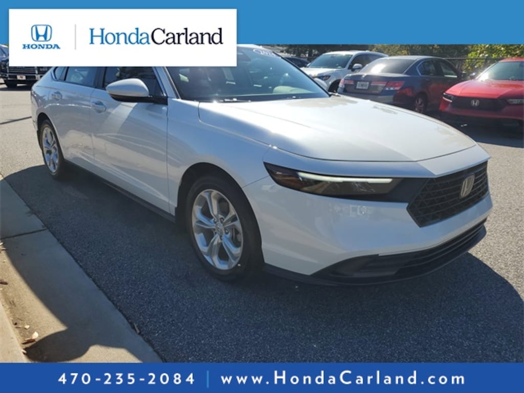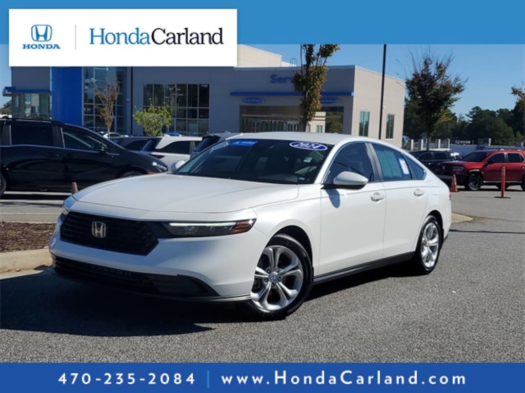 HondaTrue CERTIFIED!! Receive a LIFETIME Limited Powertrain Warranty - FREE OF CHARGE!! CARFAX One-Owner. Clean CARFAX. Platinum White Pearl 2024 Honda Accord LX FWD CVT LIFETIME POWERTRAIN WARRANTY, REMAINDER OF FACTORY WARRANTY, BLUETOOTH MP3, BACKUP CAMERA, BLINDSPOT, REMOTE KEYLESS ENTRY, REMOTE START, CLEAN CARFAX HISTORY, ONE OWNER, BOUGHT, TRADED AND MAINTAINED AT HONDA CARLAND, SERVICE RECORDS AVAILABLE, LOW MILEAGE, Black w/Fabric Seat Trim, 4 Speakers, ABS brakes, Adaptive Cruise Control: Adaptive Cruise Control (ACC) with Low-Speed Follow, Alloy wheels, AM/FM radio, Apple CarPlay/Android Auto, Auto High-beam Headlights, Automatic temperature control, Brake assist, Compass, Delay-off headlights, Dual front impact airbags, Dual front side impact airbags, Electronic Stability Control, Exterior Parking Camera Rear, Fabric Seat Trim, Fully automatic headlights, Knee airbag, Lane departure: Lane Keeping Assist System (LKAS) active, Outside temperature display, Overhead airbag, Power door mirrors, Radio data system, Radio: 160-Watt AM/FM Audio System, Remote keyless entry, Security system, Steering wheel mounted audio controls.
