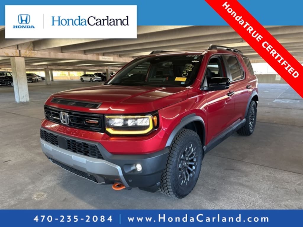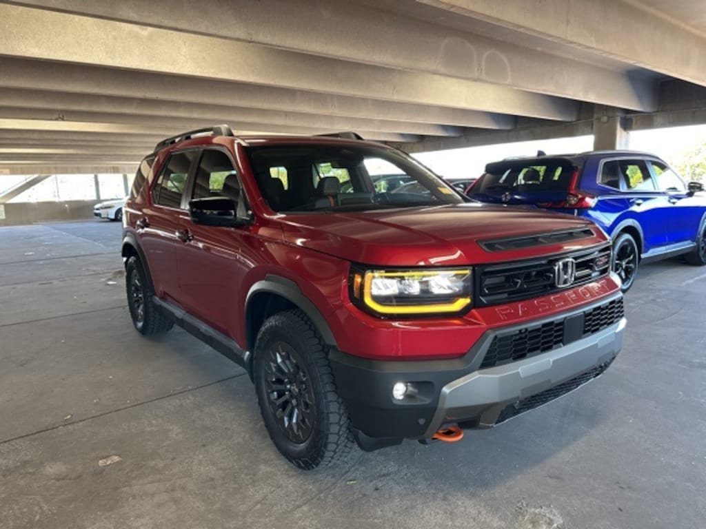 HondaTrue CERTIFIED!! AWD!! Receive a LIFETIME Limited Powertrain Warranty - FREE OF CHARGE!! Clean CARFAX. Radiant Red Metallic II 2026 Honda Passport TrailSport AWD 10-Speed Automatic LIFETIME POWERTRAIN WARRANTY, REMAINDER OF FACTORY WARRANTY, BLUETOOTH MP3, BACKUP CAMERA, BLINDSPOT, NAVIGATION NAV GPS, SUNROOF MOONROOF, REMOTE KEYLESS ENTRY, REMOTE START, HEATED SEATS, CLEAN CARFAX HISTORY, LOW MILEAGE, 9 Speakers, ABS brakes, Adaptive Cruise Control: Adaptive Cruise Control (ACC) with Low-Speed Follow, Alloy wheels, Apple CarPlay/Android Auto, Auto High-beam Headlights, Auto-dimming Rear-View mirror, Automatic temperature control, Blind Spot Information (BSI) System warning, Brake assist, Delay-off headlights, Dual front impact airbags, Dual front side impact airbags, Electronic Stability Control, Exterior Parking Camera Rear, Front dual zone A/C, Front fog lights, Fully automatic headlights, Heated door mirrors, Heated Front Bucket Seats, Heated front seats, HVAC memory, Knee airbag, Lane departure: Lane Keeping Assist System (LKAS) active, Memory seat, Navigation system: Google Maps, Overhead airbag, Power door mirrors, Power driver seat, Power Liftgate, Power moonroof, Power passenger seat, Radio data system, Radio: Audio System w/9 Speakers, Remote keyless entry, Security system, Steering wheel mounted audio controls.