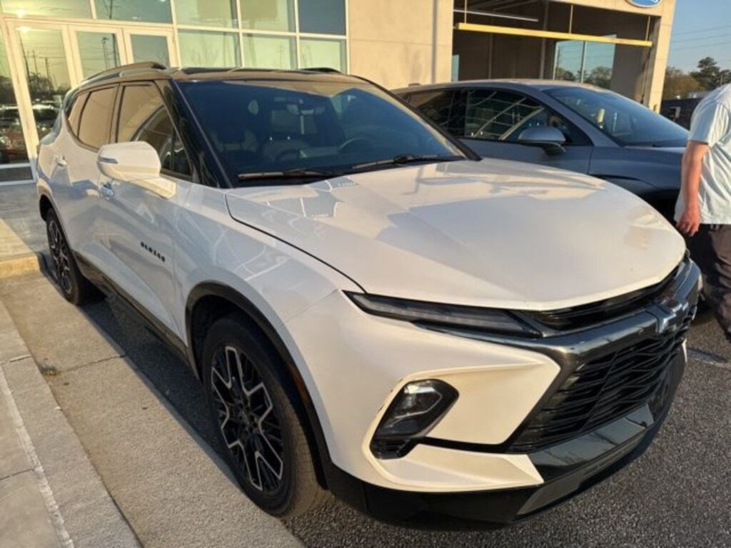Receive a LIFETIME Limited Powertrain Warranty - FREE OF CHARGE!! CARFAX One-Owner. Iridescent Pearl Tricoat 2023 Chevrolet Blazer RS FWD 9-Speed Automatic with Overdrive LIFETIME POWERTRAIN WARRANTY, BLUETOOTH MP3, BACKUP CAMERA, BLINDSPOT, NAVIGATION NAV GPS, SUNROOF MOONROOF, SIRIUS XM SATELLITE RADIO, REMOTE KEYLESS ENTRY, REMOTE START, HEATED SEATS, COOLED SEATS, ONE OWNER, 6-Way Power Front Passenger Seat Adjuster, 8 Speakers, 8-Way Power Driver Seat Adjuster, ABS brakes, Adaptive Cruise Control, Alloy wheels, AM/FM radio: SiriusXM with 360L, Apple CarPlay/Android Auto, Auto High-beam Headlights, Auto-dimming door mirrors, Auto-dimming Rear-View mirror, Automatic temperature control, Bose Premium 8-Speaker Audio System Feature, Child-Seat-Sensing Airbag, Delay-off headlights, Dual front impact airbags, Dual front side impact airbags, Emergency communication system: OnStar and Chevrolet connected services capable, Enhanced Automatic Emergency Braking, Front dual zone A/C, Fully automatic headlights, Garage door transmitter, HD Surround Vision, Heated door mirrors, Heated Driver & Front Passenger Seats, Heated front seats, Heated Rear Outboard Seating Positions, Heated Steering Wheel, Knee airbag, Leather Shift Knob, Memory Settings For Driver Seat & Exterior Mirrors, Navigation System, Perforated Leather-Appointed Seat Trim, Power door mirrors, Power Driver Lumbar Control, Power driver seat, Power Liftgate, Power Panoramic Tilt-Sliding Sunroof, Power passenger seat, Power Tilt & Telescoping Steering Column, Power windows, Premium audio system: Chevrolet Infotainment 3 Premium, Radio data system, Radio: Chevrolet Infotainment 3 Premium System, Rear Camera Mirror, Rear Camera Mirror Washer, Rear Park Assist w/Audible Warning, Remote keyless entry, Ride & Handling Suspension, Security system, Steering wheel mounted audio controls, Ventilated Driver & Front Passenger Seats.