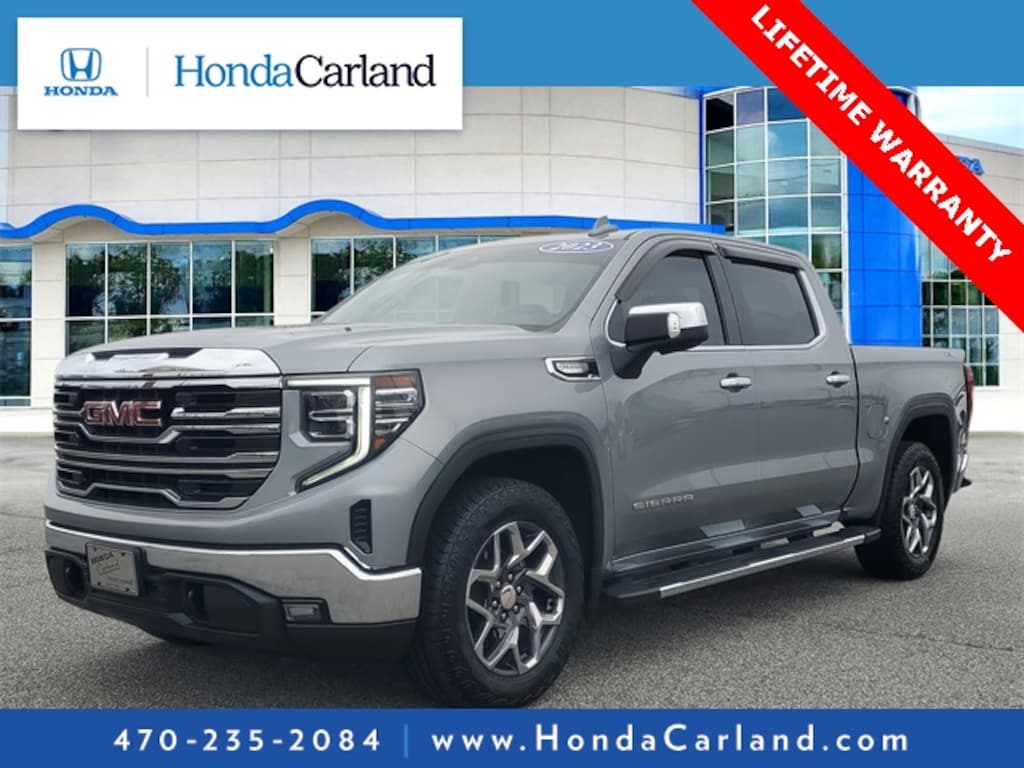 GOOD LOOKING SLT 4X4!! Receive a LIFETIME Limited Powertrain Warranty - FREE OF CHARGE!! Sterling Metallic 2023 GMC Sierra 1500 SLT 4WD 10-Speed Automatic LIFETIME POWERTRAIN WARRANTY, REMAINDER OF FACTORY WARRANTY, BLUETOOTH MP3, BACKUP CAMERA, BLINDSPOT, NAVIGATION NAV GPS, SIRIUS XM SATELLITE RADIO, REMOTE KEYLESS ENTRY, REMOTE START, HEATED SEATS, COOLED SEATS, 10-Speed Automatic, 4WD, Jet Black w/Leather-Appointed Seat Trim, 10-Way Power Driver Seat Adjuster w/Lumbar, 10-Way Power Passenger Seat Adjuster w/Lumbar, 2 Charge/Data USB Ports, 2 Charge/Data USB Ports Inside Center Console, 2 Type-C Charge-Only Rear USB Ports, 6-Speaker Audio System Feature, ABS brakes, All-Weather Floor Liner (LPO), Alloy wheels, AM/FM radio, Apple CarPlay/Android Auto, Auto High-beam Headlights, Auto-dimming door mirrors, Auto-dimming Rear-View mirror, Auto-Locking Rear Differential, Automatic Emergency Braking, Automatic temperature control, Brake assist, Chrome Wheel To Wheel Assist Steps, Compass, Delay-off headlights, Dual Exhaust System, Dual front impact airbags, Dual front side impact airbags, Electronic Precision Shift, Electronic Stability Control, Floor-Mounted Center Console, Following Distance Indicator, Forward Collision Alert, Front Bucket Seats, Front Center Armrest w/Storage, Front dual zone A/C, Front fog lights, Front Pedestrian Braking, Front Rainsensing Wipers, Fully automatic headlights, HD Rear Vision Camera, Heated door mirrors, Heated front seats, Heated steering wheel, Heavy-Duty Air Filter, Hill Descent Control, Hitch Guidance w/Hitch View, Integrated Trailer Brake Controller, IntelliBeam Automatic High Beam On/Off, Keyless Open & Start, Lane Keep Assist w/Lane Departure Warning, Low tire pressure warning, Memory seat, Navigation System, Off-Road Suspension, Overhead airbag, Perf Leather-Appointed Front Outboard Seat Trim, Perimeter Lighting, Power door mirrors, Power driver seat, Power passenger seat, Power Rake & Telescoping Steering Column, Power windows, Premium audio system: GMC Infotainment System, Premium Bose 7-Speaker Sound System, Radio data system, Radio: Premium GMC Infotainment Audio System, Rain sensing wipers, Remote keyless entry, Remote Vehicle Starter System, Security system, SiriusXM w/360L, SLT Convenience Package, Split folding rear seat, Spray-On Pickup Bed Liner w/GMC Logo, Standard Suspension Package, Steering Wheel Audio Controls, Steering wheel mounted audio controls, Texas Edition Badging, Texas Edition SLT Premium Package, Theft Deterrent System (Unauthorized Entry), Ventilated Driver & Front Passenger Seats, Wi-Fi Hotspot Capable, Wireless Charging, Wireless Phone Projection, X31 Hard Badge, X31 Off-Road & Protection Package, X31 Off-Road Package.