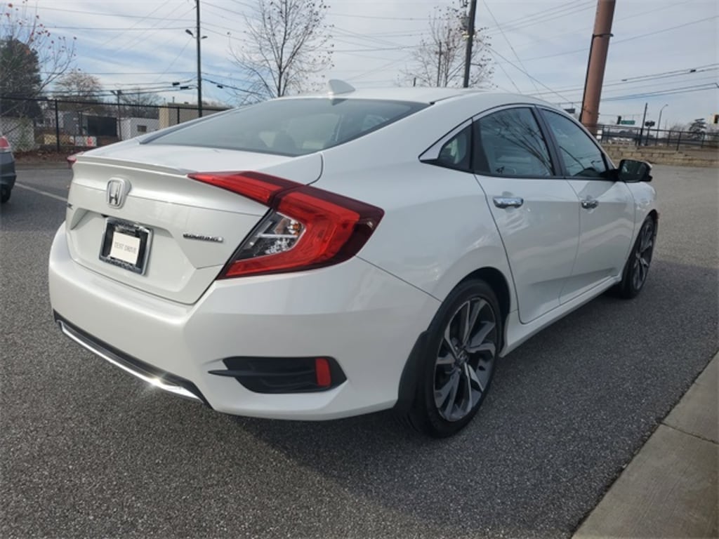 Receive a LIFETIME Limited Powertrain Warranty - FREE OF CHARGE!! New Price! CARFAX One-Owner. Clean CARFAX. Platinum White Pearl 2020 Honda Civic Touring FWD CVT LIFETIME POWERTRAIN WARRANTY, BLUETOOTH MP3, BACKUP CAMERA, BLINDSPOT, NAVIGATION NAV GPS, SUNROOF MOONROOF, SIRIUS XM SATELLITE RADIO, REMOTE KEYLESS ENTRY, REMOTE START, HEATED SEATS, CLEAN CARFAX HISTORY, ONE OWNER, LOW MILEAGE, Ivory w/Leather Seat Trim, 10 Speakers, Adaptive Cruise Control: Adaptive Cruise Control (ACC) with Low-Speed Follow, Alloy wheels, AM/FM radio: SiriusXM, Apple CarPlay/Android Auto, Auto High-beam Headlights, Auto-dimming Rear-View mirror, Automatic temperature control, Brake assist, Compass, Delay-off headlights, Dual front impact airbags, Dual front side impact airbags, Electronic Stability Control, Exterior Parking Camera Rear, Forward collision: Collision Mitigation Braking System (CMBS) + FCW mitigation, Front dual zone A/C, Front fog lights, Fully automatic headlights, Garage door transmitter: HomeLink, Heated door mirrors, Heated Front Bucket Seats, Heated front seats, Heated rear seats, Lane departure: Lane Keeping Assist System (LKAS) active, Leather Seat Trim, Navigation system: Honda Satellite-Linked Navigation System, Occupant sensing airbag, Outside temperature display, Overhead airbag, Power door mirrors, Power driver seat, Power moonroof, Power passenger seat, Radio data system, Radio: 450-Watt AM/FM/HD/SiriusXM Audio System, Rain sensing wipers, Remote keyless entry, Security system, Steering wheel mounted audio controls.