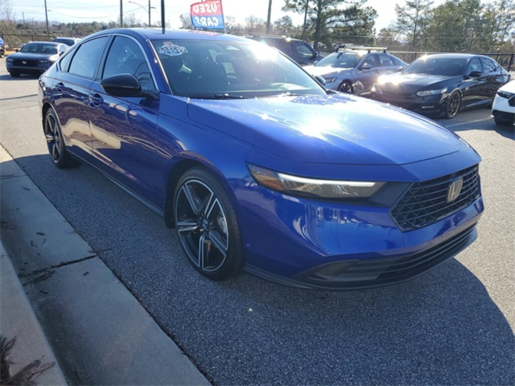 Receive a LIFETIME Limited Powertrain Warranty - FREE OF CHARGE!! CARFAX One-Owner. Clean CARFAX. Still Night Pearl 2024 Honda Accord Hybrid Sport FWD eCVT LIFETIME POWERTRAIN WARRANTY, REMAINDER OF FACTORY WARRANTY, BLUETOOTH MP3, BACKUP CAMERA, BLINDSPOT, SUNROOF MOONROOF, REMOTE KEYLESS ENTRY, REMOTE START, HEATED SEATS, CLEAN CARFAX HISTORY, ONE OWNER, LOW MILEAGE, 2.0L 16V DOHC, 4-Wheel Disc Brakes, 8 Speakers, ABS brakes, Adaptive Cruise Control: Adaptive Cruise Control (ACC) with Low-Speed Follow, Alloy wheels, AM/FM radio, Apple CarPlay/Android Auto, Auto High-beam Headlights, Automatic temperature control, Blind Spot Information (BSI) System warning, Brake assist, Compass, Delay-off headlights, Dual front impact airbags, Dual front side impact airbags, Electronic Stability Control, Emergency communication system: HondaLink, Exterior Parking Camera Rear, Fabric Seat Trim, Front anti-roll bar, Front dual zone A/C, Fully automatic headlights, Knee airbag, Lane departure: Lane Keeping Assist System (LKAS) active, Low tire pressure warning, Occupant sensing airbag, Outside temperature display, Overhead airbag, Power door mirrors, Power driver seat, Power moonroof, Radio data system, Radio: 180-Watt Audio System, Rear anti-roll bar, Rear side impact airbag, Remote keyless entry, Security system, Speed-sensing steering, Steering wheel mounted audio controls.