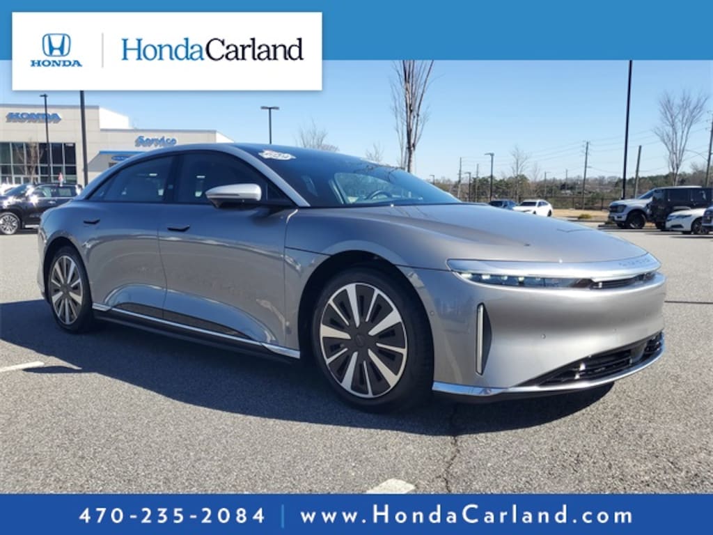 CARFAX One-Owner. Clean CARFAX. Cosmos Silver Metallic 2023 Lucid Air Grand Touring AWD 1-Speed Automatic REMAINDER OF FACTORY WARRANTY, BLUETOOTH MP3, BACKUP CAMERA, BLINDSPOT, NAVIGATION NAV GPS, SUNROOF MOONROOF, REMOTE KEYLESS ENTRY, HEATED SEATS, COOLED SEATS, CLEAN CARFAX HISTORY, ONE OWNER, LOW MILEAGE, 21 Speakers, ABS brakes, Active Cruise Control, Adaptive suspension, Alloy wheels, AM/FM radio, Android Auto Wired & Wireless Integration, Apple CarPlay Wired & Wireless Integration w/Siri, Apple CarPlay/Android Auto, Audio memory, Auto High-beam Headlights, Auto-dimming door mirrors, Auto-dimming Rear-View mirror, Automatic temperature control, Brake assist, Door auto-latch, DreamDrive Driver Assistance System, Dual front impact airbags, Dual front side impact airbags, Extended Nappa Full-Grain Leather Seat Trim, Front anti-roll bar, Front dual zone A/C, Fully automatic headlights, Garage door transmitter: HomeLink, Head restraints memory, Heated door mirrors, Heated Front Bucket Seats, Heated front seats, Heated rear seats, Heated steering wheel, Highway Assist w/Active Lane Centering, Knee airbag, Memory seat, Navigation System, Overhead airbag, Power adjustable front head restraints, Power door mirrors, Power driver seat, Power passenger seat, Radio data system, Radio: AM/FM/HD Surreal Sound, Rain sensing wipers, Rear air conditioning, Rear dual zone A/C, Rear fog lights, Remote keyless entry, Security system, Speed control, Steering wheel memory, Steering wheel mounted audio controls, Surreal Sound Pro Audio System, Traction control, Ventilated front seats.
