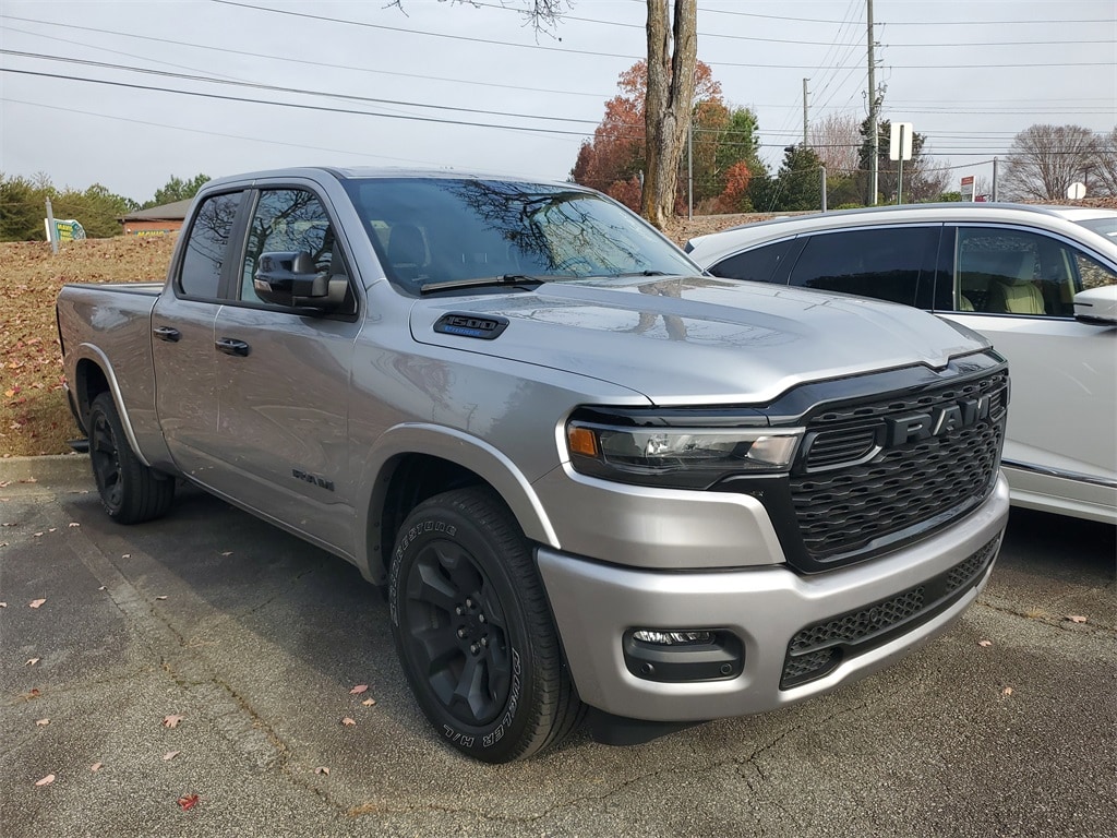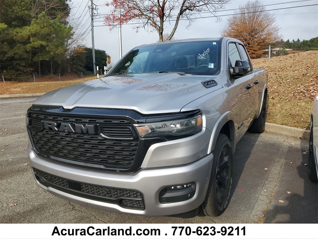 CARFAX One-Owner. Clean CARFAX. Acura Carland is pleased to present this 2025 Ram 1500 Big Horn/Lone Star in Billet Silver Metallic Clearcoat, Beautifully equipped with Big Horn Level 2 Equipment Group (115V Auxiliary Power Outlet, 12" Touchscreen Display, 400W Inverter, 4G LTE Wi-Fi Hot Spot, 9 Amplified Speakers w/Subwoofer, Air Conditioning ATC w/Dual Zone Control, Apple CarPlay, Auto Power-Folding Mirrors, Auto-Dimming Exterior Driver Mirror, Auto-Dimming Rear-View Mirror, Black Exterior Mirrors, Black Premium Power Mirrors, Cluster 7" TFT Color Display, Configurable Drive Mode, Connected Travel & Traffic Services, Connectivity - US/Canada, Convex Wide-Angle Exterior Mirror Insert, Exterior Mirrors Courtesy Lamps, Exterior Mirrors w/Heating Element, Exterior Mirrors w/Supplemental Signals, Glove Box Lamp, Google Android Auto, GPS Antenna Input, GPS Navigation, HD Radio, Heated Front Seats, Heated Steering Wheel, Integrated Voice Command w/Bluetooth, Leather Wrapped Steering Wheel, LED Dome Lamp w/On/Off Switch, LED Footwell Lighting, Overhead LED Lamps, Power 2-Way Driver Lumbar Adjust, Power Adjust 8-Way Driver Seat, Power Adjustable Pedals, Premium Overhead Console, Radio: Uconnect 5 Nav w/12" Display, Rear Power Sliding Window, Rear Window Defroster, Remote Tailgate Release, Security Alarm, SiriusXM w/360L, Steering Wheel Mounted Audio Controls, Sun Visors w/Illuminated Vanity Mirrors, Universal Garage Door Opener, and USB Host Flip), Night Edition (3 Rear Seat Head Restraints, 4 Way Front Headrests, Accent Color Door Handles, Accent Color Premium Power Mirrors, Accent Color Tailgate Handle, Anti-Spin Differential Rear Axle, Black Exterior Truck Badging, Black Headlamp Bezels, Black Interior Accents, Black Painted Exterior Mirrors Caps, Black RAM Grille Badge, Black Tail Lamp Bezels, Body Color Front Bumper, Body Color Rear Bumper w/Step Pads, Bucket Seats, Deluxe Cloth Bucket Seats, Dual Exhaust w/Black Tips, Front Seat Back Map Pockets, Full Length Floor Console, Grille Black Surround Black Mesh, Manual Adjust 4-Way Front Passenger Seat, Rear 60/40 Folding Seat, Rear Wheelhouse Liners, and Wheels: 20" x 9" Aluminum Painted Clad), Quick Order Package 23Z Big Horn, 1500 Big Horn/Lone Star, 4D Quad Cab, 3.6L V6 24V VVT, 8-Speed Automatic, RWD, Billet Silver Metallic Clearcoat, Black Cloth, 3.21 Rear Axle Ratio, 4-Wheel Disc Brakes, 6 Speakers, ABS brakes, Air Conditioning, Alloy wheels, AM/FM radio, Apple CarPlay/Android Auto, Auto High-beam Headlights, Brake assist, Bumpers: chrome, Chrome RAM Grille Badge, Cloth Bench Seat, Compass, Delay-off headlights, Driver door bin, Dual front impact airbags, Dual front side impact airbags, Electronic Stability Control, Front anti-roll bar, Front Center Armrest w/Storage, Front fog lights, Front reading lights, Front wheel independent suspension, Fully automatic headlights, Heated door mirrors, Illuminated entry, Low tire pressure warning, Manual Folding Exterior Mirrors, Manufacturer's Statement of Origin, MOPAR Front & Rear Rubber Floor Mats, Occupant sensing airbag, Outside temperature display, Overhead airbag, Overhead console, Panic alarm, ParkView Rear Back-Up Camera, Passenger door bin, Passenger vanity mirror, Power door mirrors, Power steering, Power windows, Radio data system, Radio: Uconnect 5 w/8.4" Display, Rear anti-roll bar, Rear seat center armrest, Rear step bumper, Remote keyless entry, Speed control, Split folding rear seat, Tachometer, Telescoping steering wheel, Tilt steering wheel, Traction control, Trip computer, Variably intermittent wipers, Voltmeter, and Wheels: 18" x 8" Cast-Aluminum Painted! Enjoy the benefits of the complimentary 3mos/3000mile powertrain warranty on all late model used vehicles up to 150,000 miles! See this and all of our incredible inventory at www.acuracarland.com.