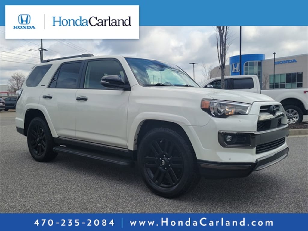 Receive a LIFETIME Limited Powertrain Warranty - FREE OF CHARGE!! Clean CARFAX. Super White 2021 Toyota 4Runner Nightshade RWD 5-Speed Automatic with Overdrive LIFETIME POWERTRAIN WARRANTY, BLUETOOTH MP3, BACKUP CAMERA, BLINDSPOT, NAVIGATION NAV GPS, SUNROOF MOONROOF, SIRIUS XM SATELLITE RADIO, CD PLAYER, REMOTE KEYLESS ENTRY, REMOTE START, HEATED SEATS, COOLED SEATS, CLEAN CARFAX HISTORY, LOW MILEAGE, Black/Graphite w/Leather Seat Trim, 15 Speakers, ABS brakes, Alloy wheels, AM/FM radio: SiriusXM, Anti-whiplash front head restraints, Apple CarPlay/Android Auto, Auto High-beam Headlights, Auto-dimming Rear-View mirror, Automatic temperature control, Black Power Heated Mirrors, Black Roof Rails, Brake assist, Compass, Delay-off headlights, Dual front impact airbags, Dual front side impact airbags, Electronic Stability Control, Exterior Parking Camera Rear, Front dual zone A/C, Front fog lights, Fully automatic headlights, Garage Door Opener, Garage door transmitter: HomeLink, Heated door mirrors, Heated front seats, Heated/Ventilated Front Bucket Seats, Knee airbag, Memory seat, Moonroof w/Tilt Up & Slide, Navigation System, Nightshade Edition, Nightshade Leather Seat Trim, Occupant sensing airbag, Outside temperature display, Power door mirrors, Power driver seat, Power moonroof, Power passenger seat, Radio: Premium JBL Audio w/Navigation, Remote keyless entry, Security system, Speed control, Steering wheel mounted audio controls, Ventilated front seats, Wireless Smart Entry Door Lock.
